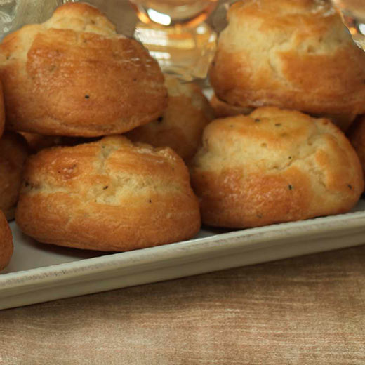 Hint: When the gougeres become fragrant, filling the room with the aroma of cheese and herbs, they are 3-5 minutes away from being done.